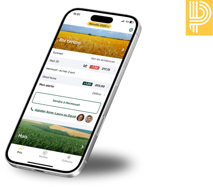 Vendez vos céréales au meilleur prix et achetez vos engrais avec les cotations Hermouet en quelques clics grâce à l'application.
